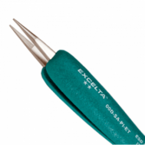 The 00D-SA-PI-ET straight strong medium pointed tweezer is the most popular general purpose tweezers used without magnification. It features serrated tips for better control. The Ergo-Tweeze® soft cushioned ESD safe (10¹⁰ ohms/sq) grips make it much more ergonomic, while offering heat protection when soldering. The overall length is 5.25".