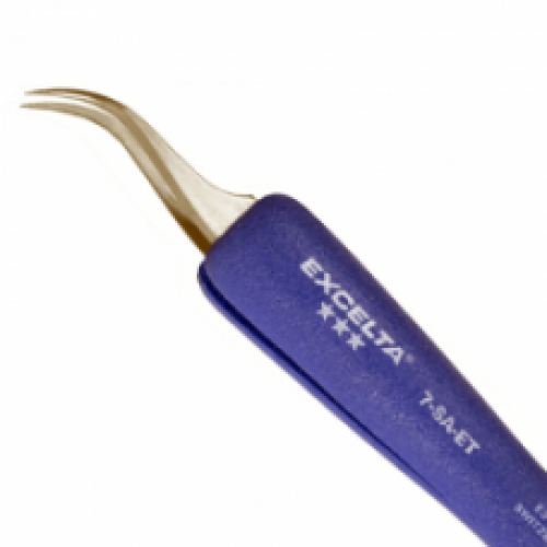 Ergo-Tweez® tweezers are ergonomically enhanced featuring a foam cushion grip to reduce hand fatigue from gripping. They also provide ESD safe properties and protect the user from heat when soldering. The curved tip provides easier access and added visibility. The 7-SA-ET curved tapered very fine point tweezer is ideal for microscopy.