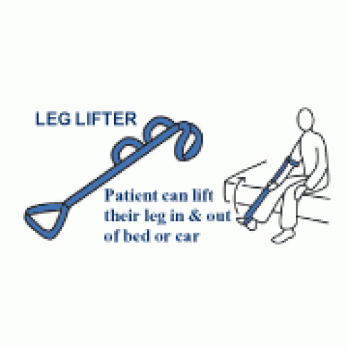 This Leg Lifter is a self-help product to help people to lift their leg on to or off a bed.