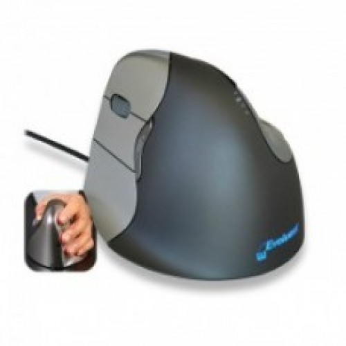 The patented design of the Evoluent Vertical Mouse 4 eliminates forearm twisting and helps reduce the muscle tension created in the forearm, neck and shoulder that an ordinary mouse may cause. The familiar two-button grip design with a center scroll wheel and comfortable, easy-to-reach programmable buttons provide an easy transition from a traditional mouse. Vertical mice allow you to relax your grip on the mouse with a "handshake" ergonomic grip and to work comfortably at your computer for longer periods in a neutral wrist position.